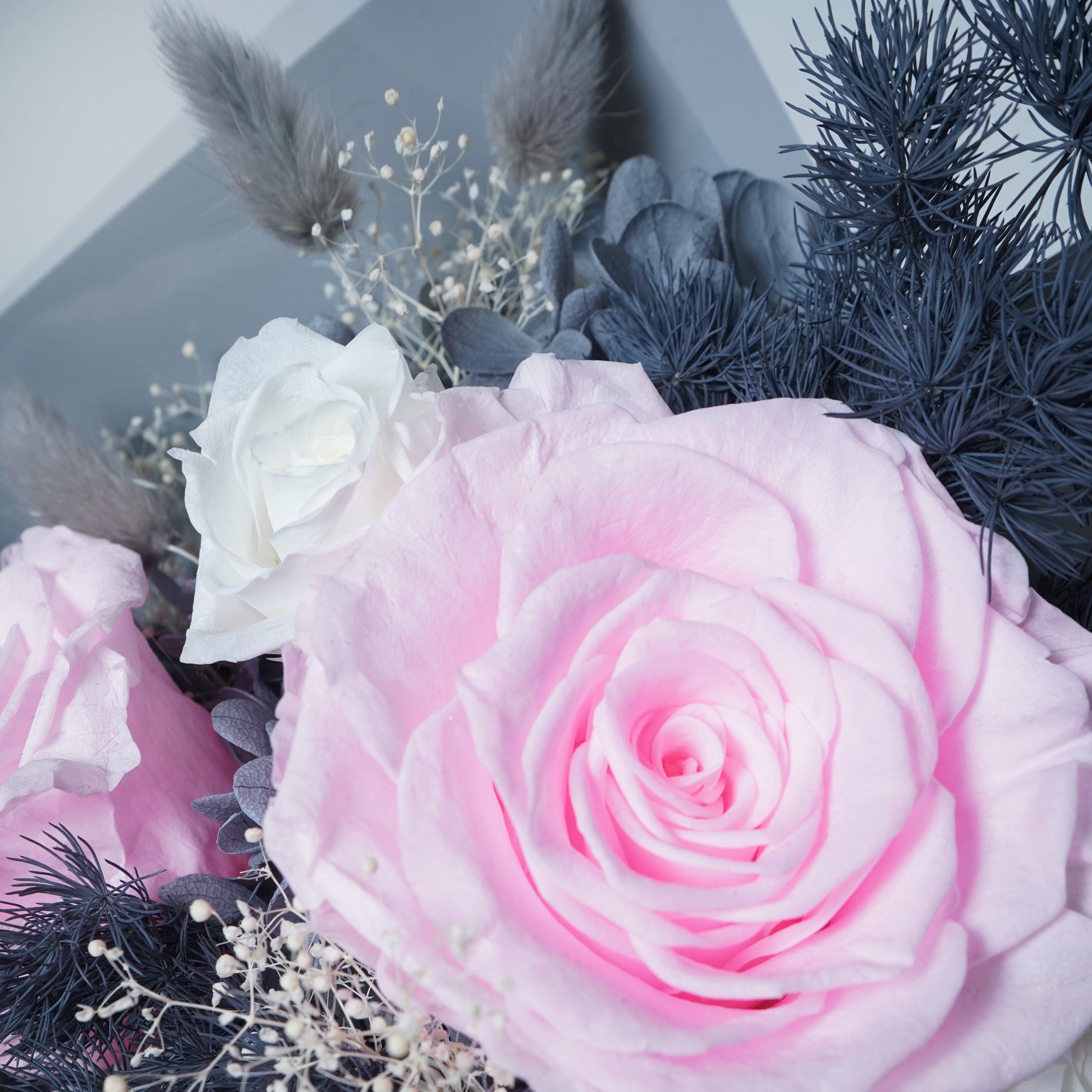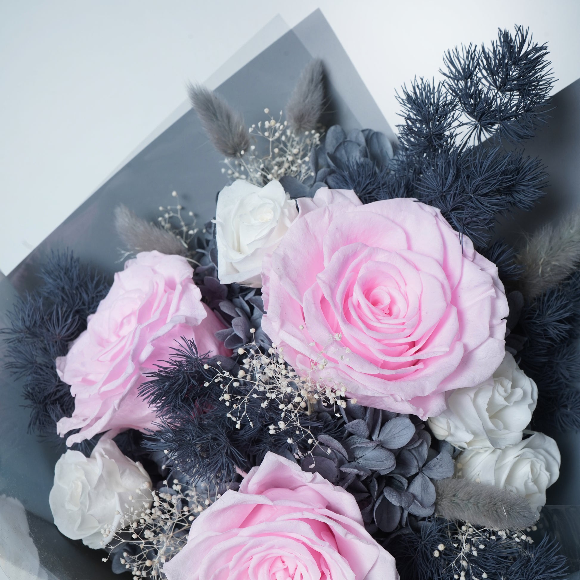 This preserved flower bouquet includes:
