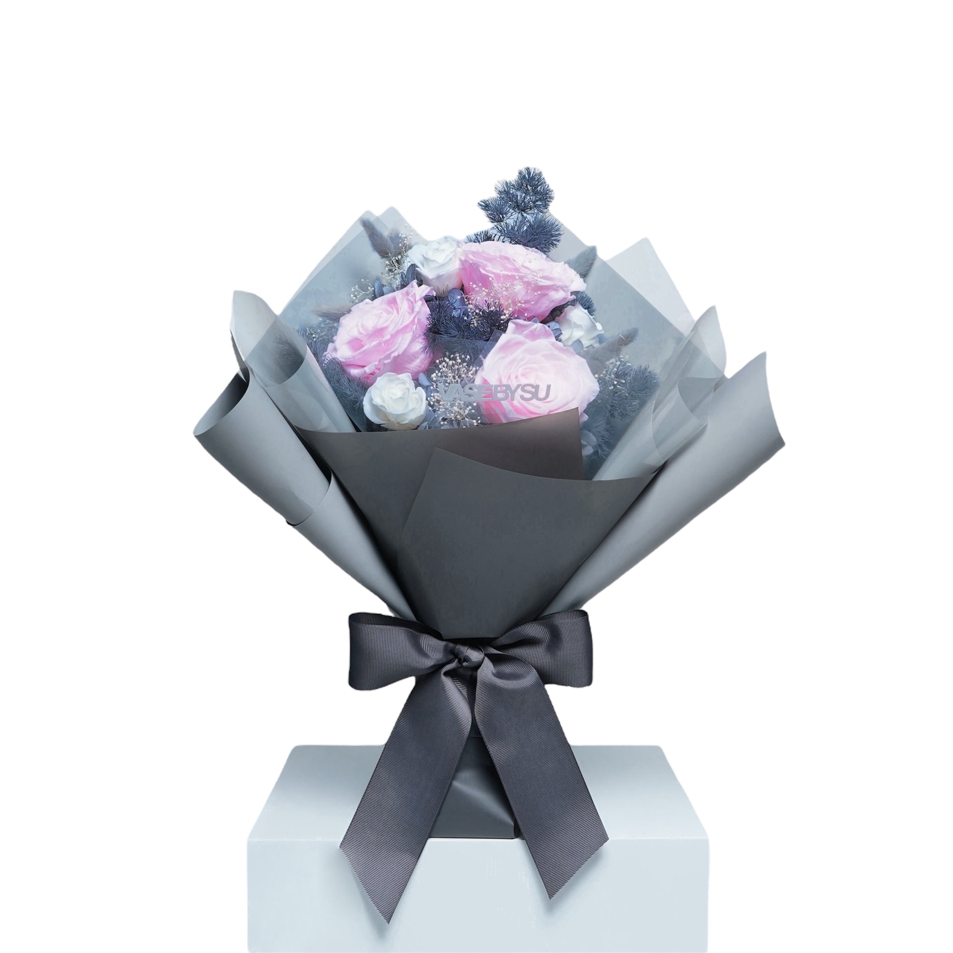 在保持相同風格的條件下,如果缺少某些保鮮花,安排也可能發生變化。