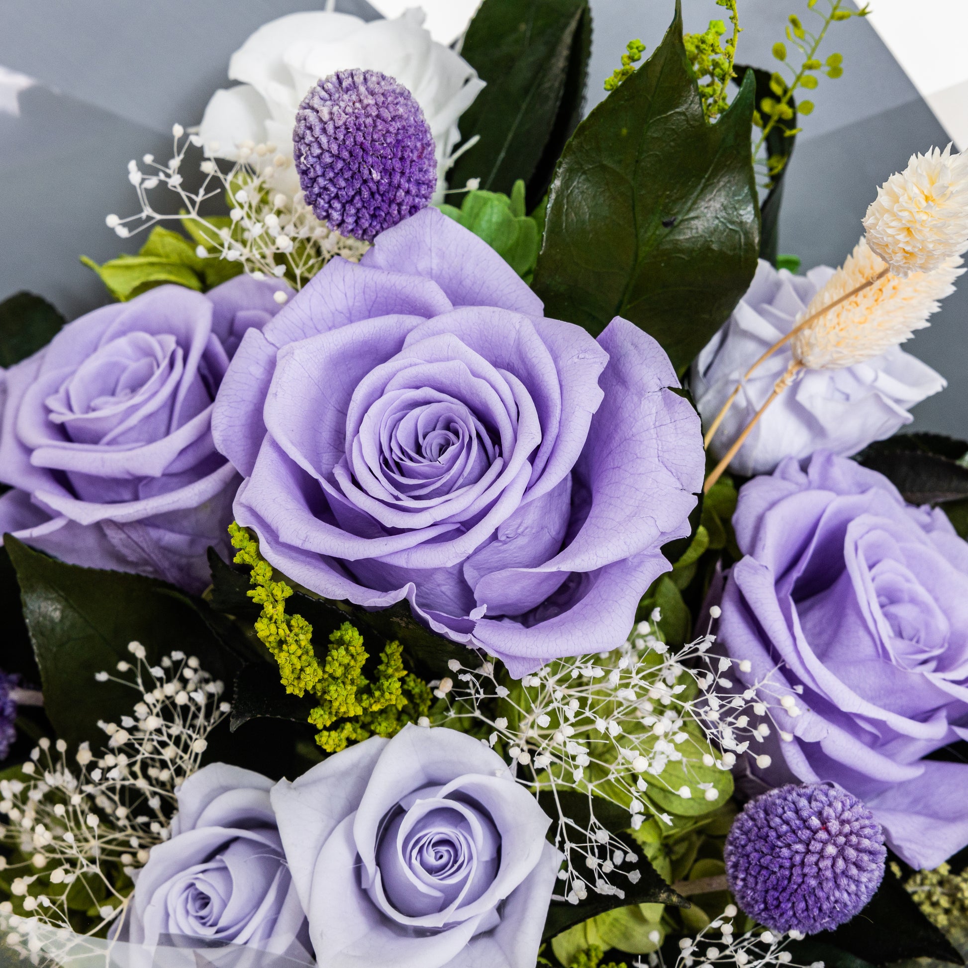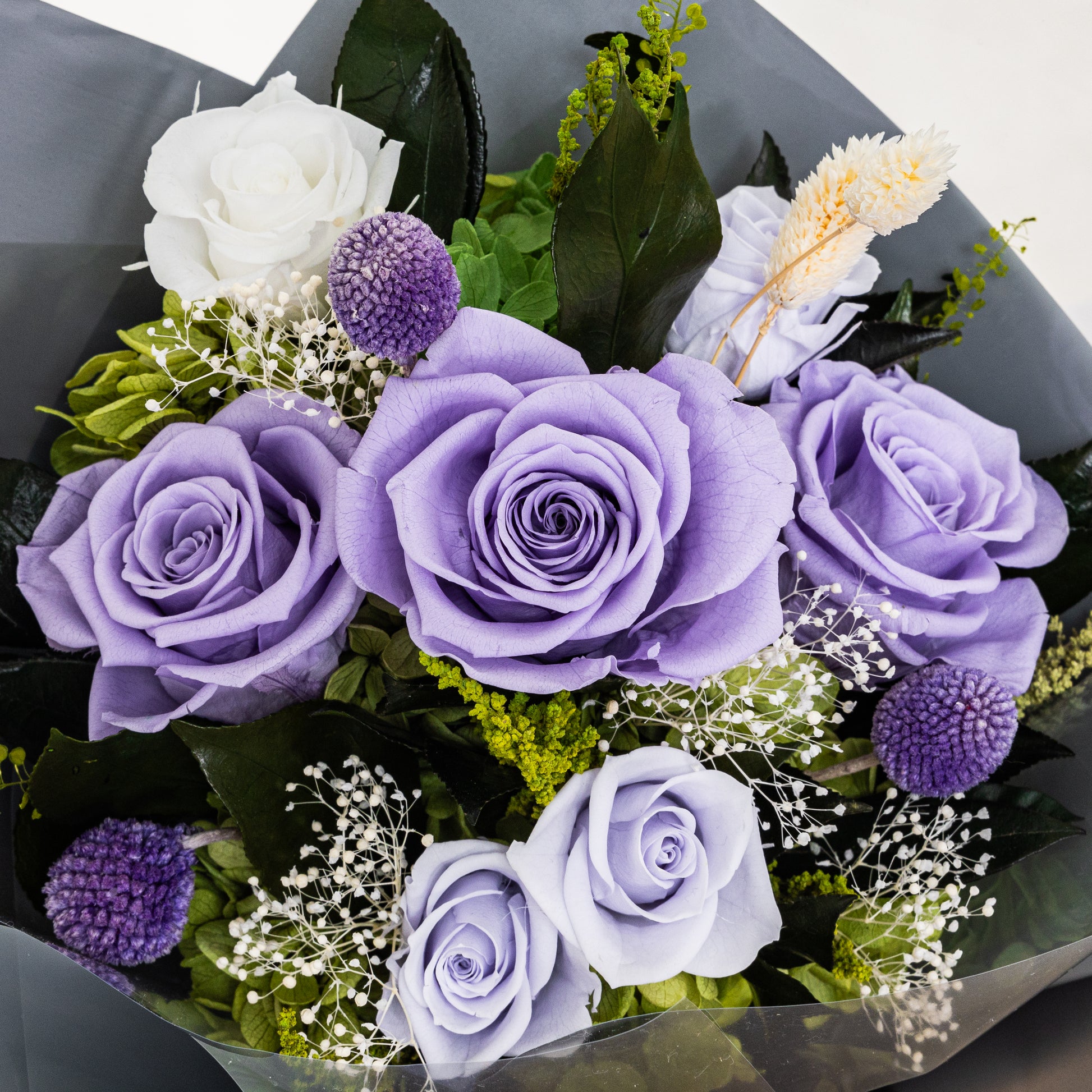 在保持相同風格的條件下,如果缺少某些保鮮花,安排也可能發生變化。