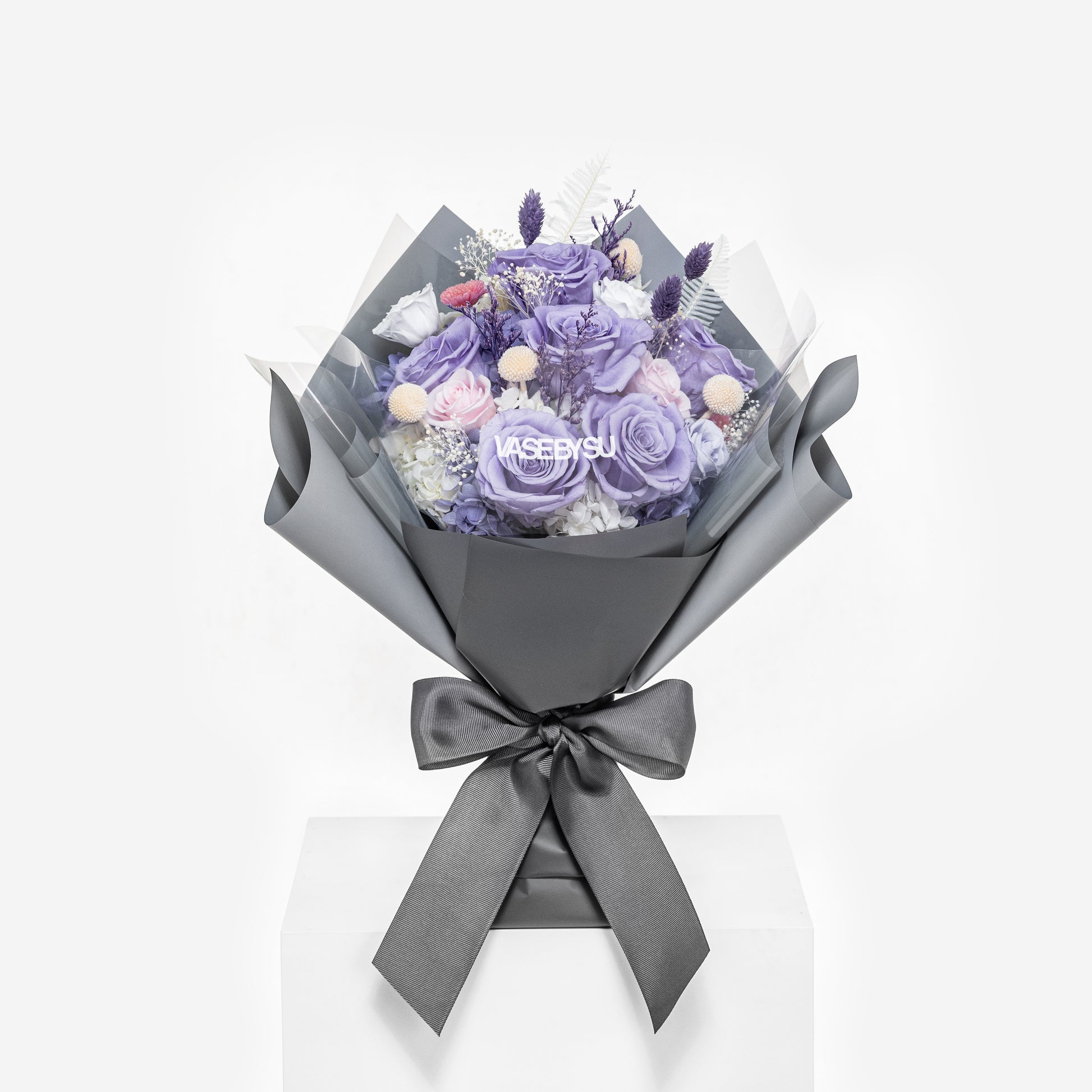 在保持相同風格的條件下,如果缺少某些保鮮花,安排也可能發生變化。