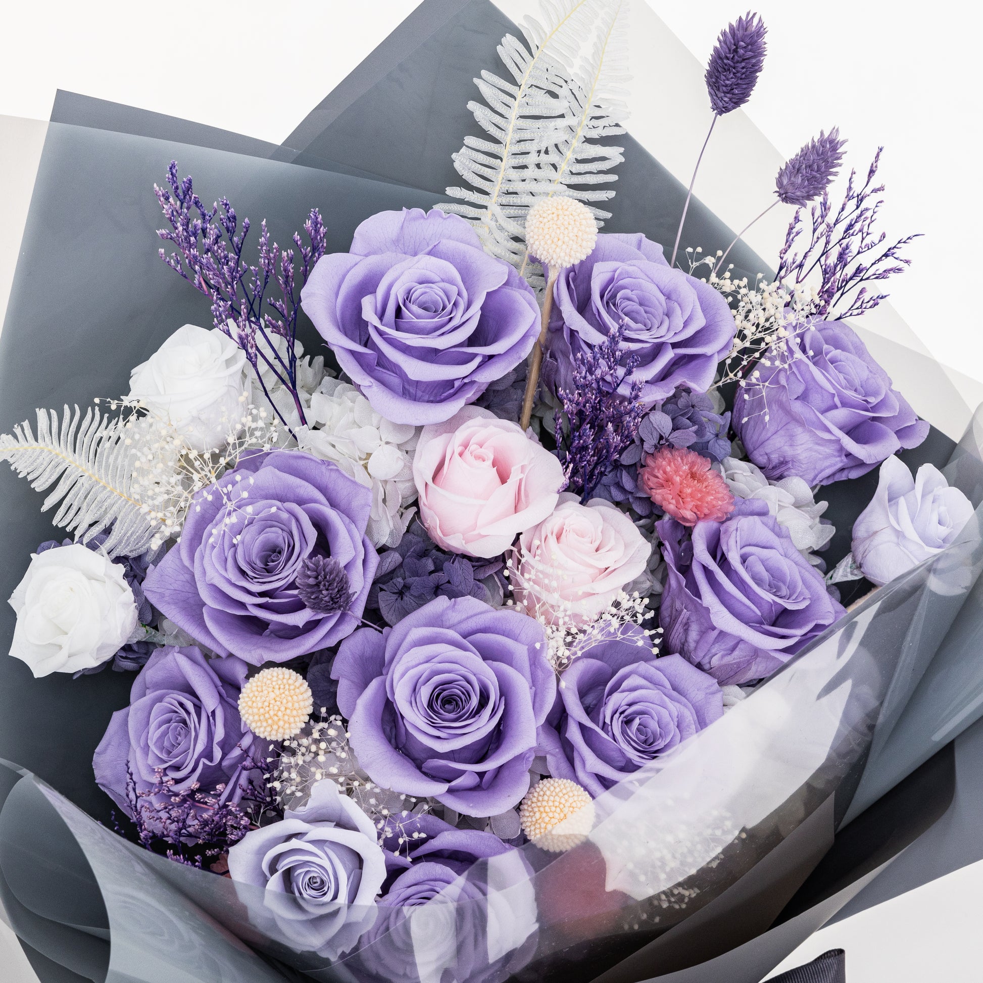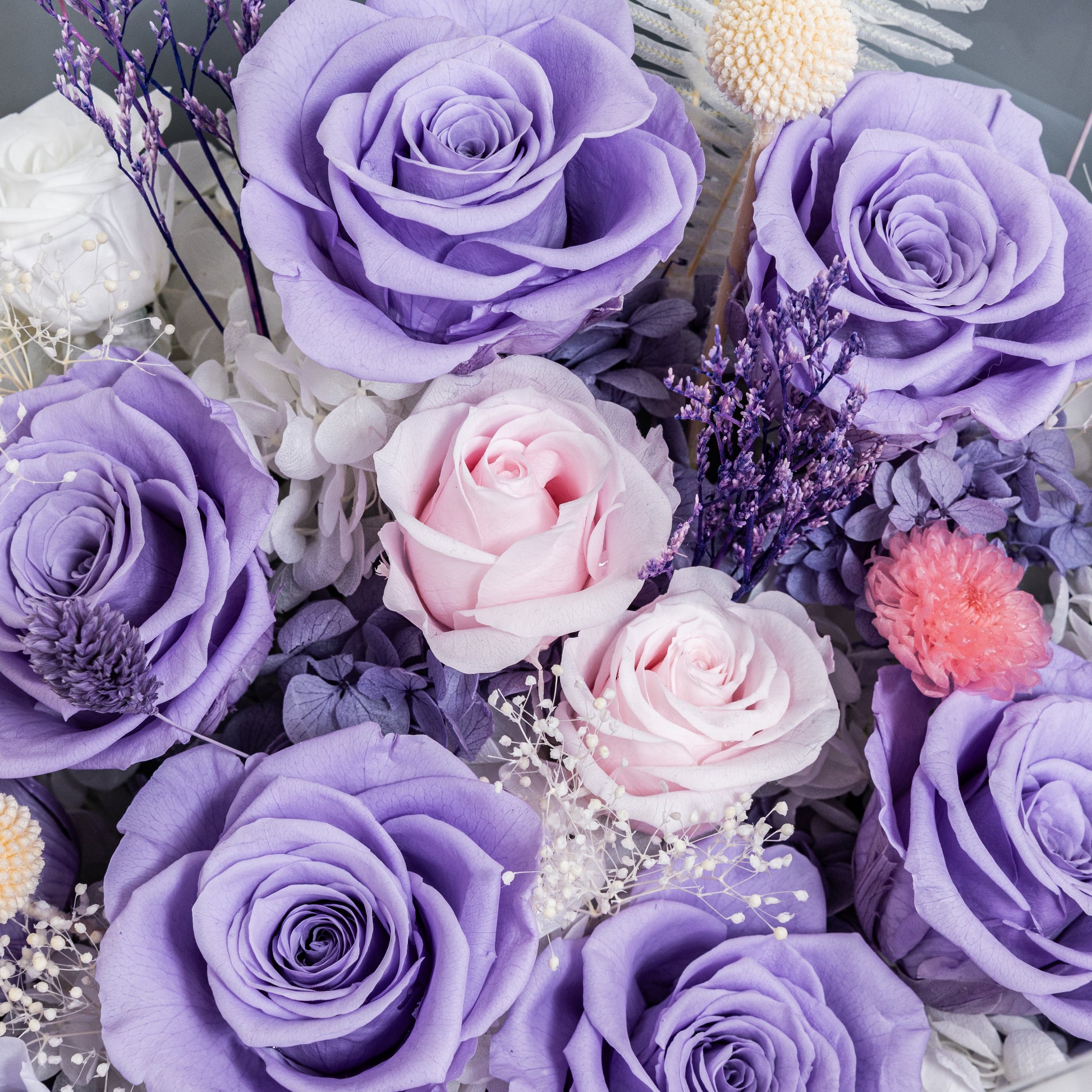 在保持相同風格的條件下,如果缺少某些保鮮花,安排也可能發生變化。
