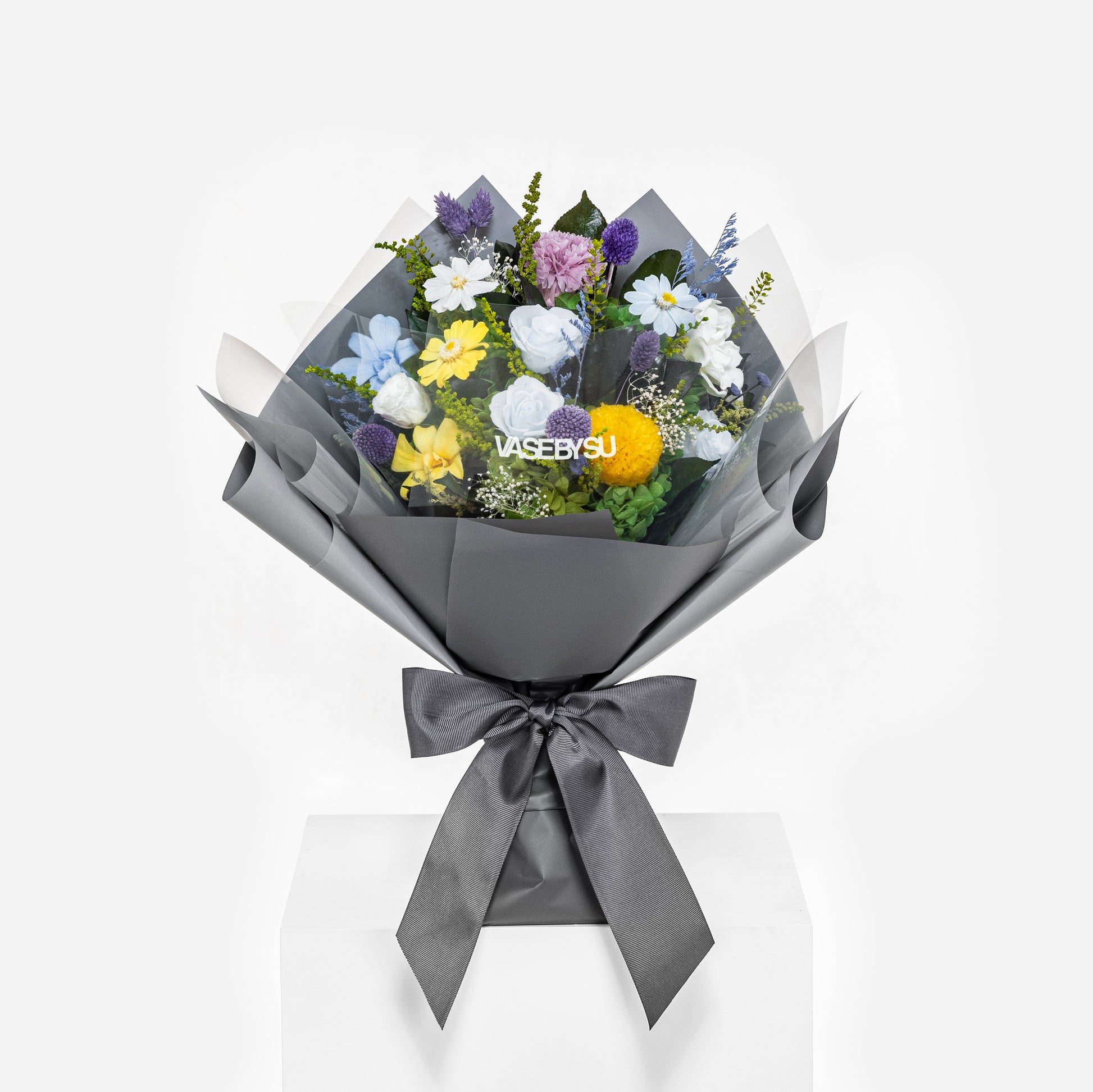 在保持相同風格的條件下,如果缺少某些保鮮花,安排也可能發生變化。