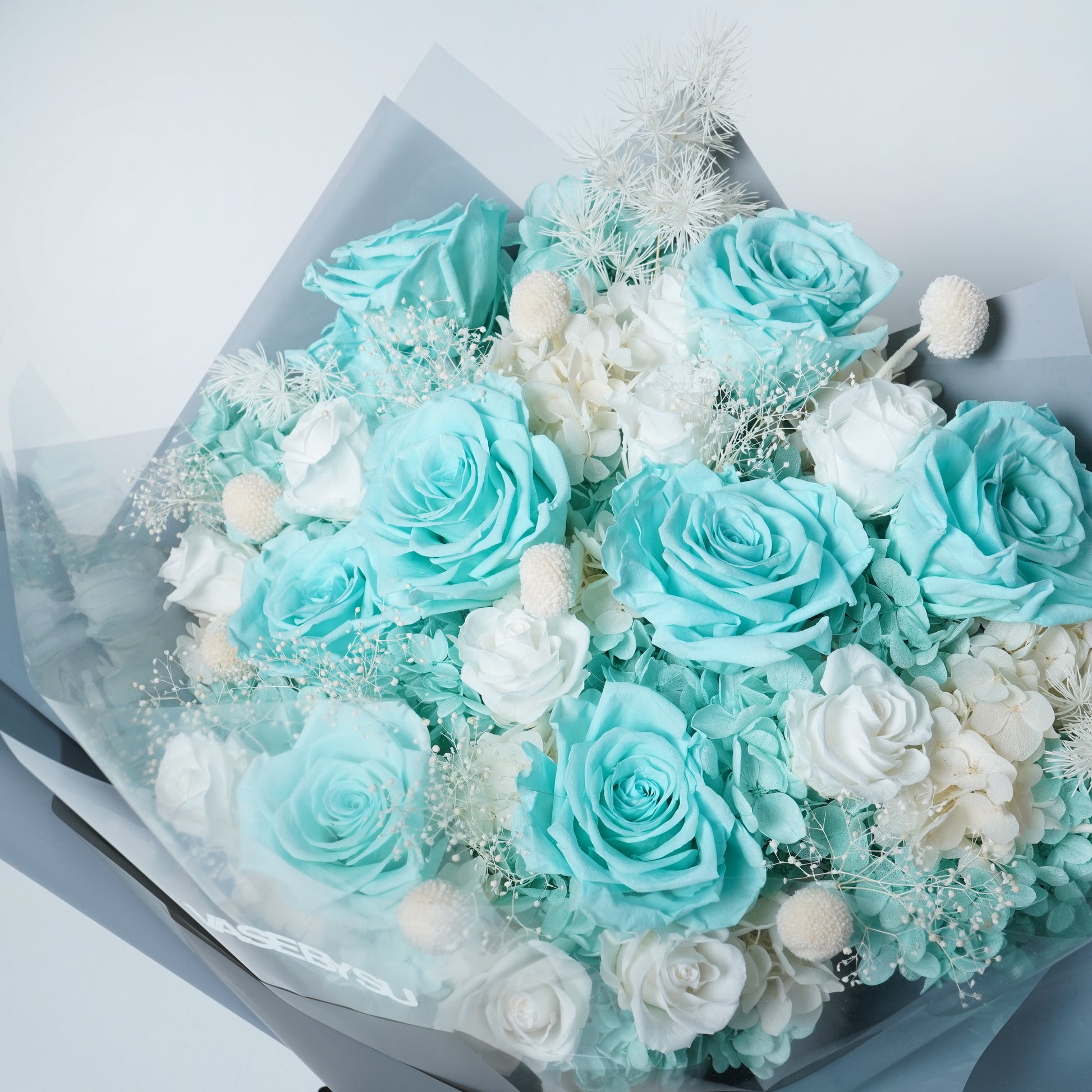 在保持相同風格的條件下,如果缺少某些保鮮花,安排也可能發生變化。