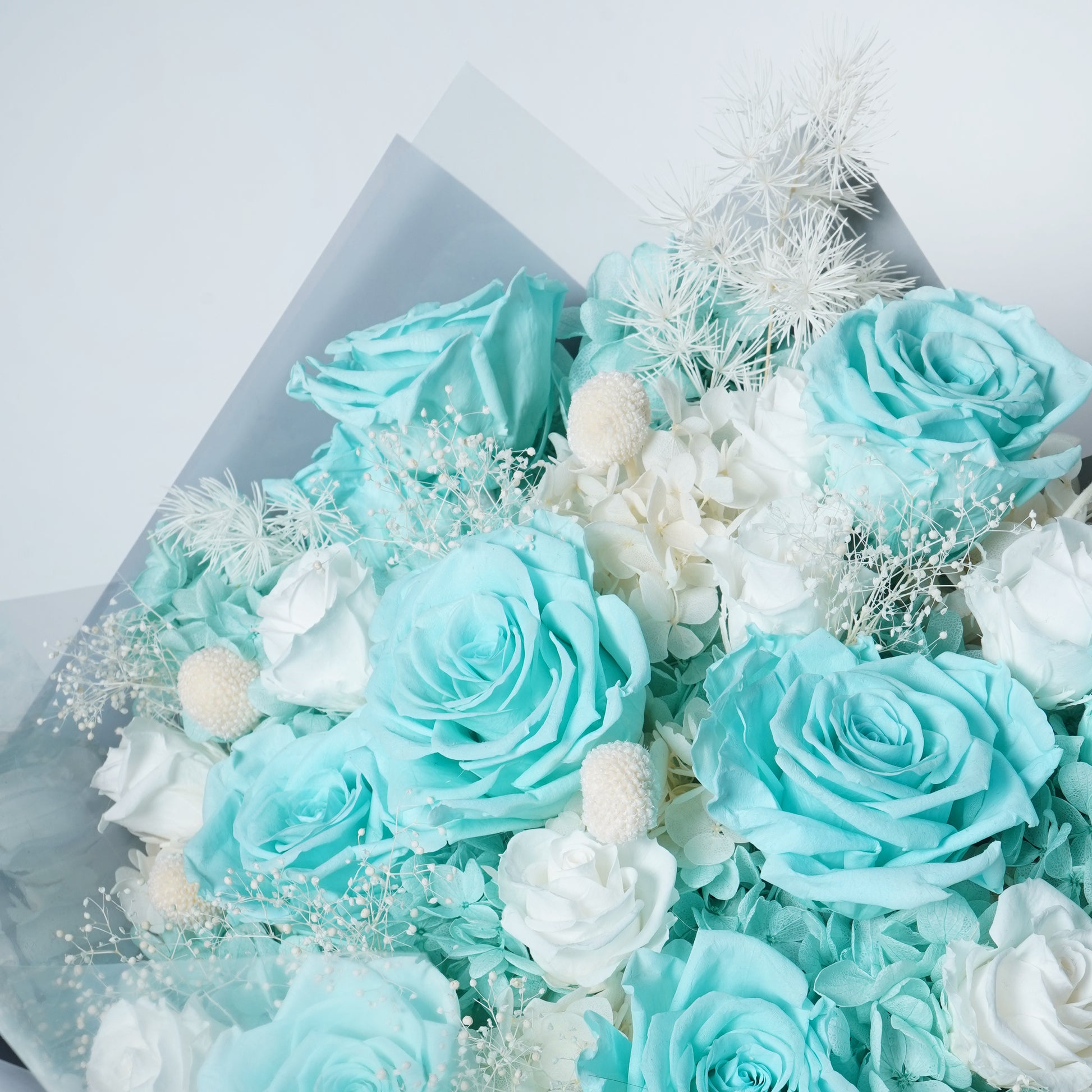 This preserved flower bouquet includes: